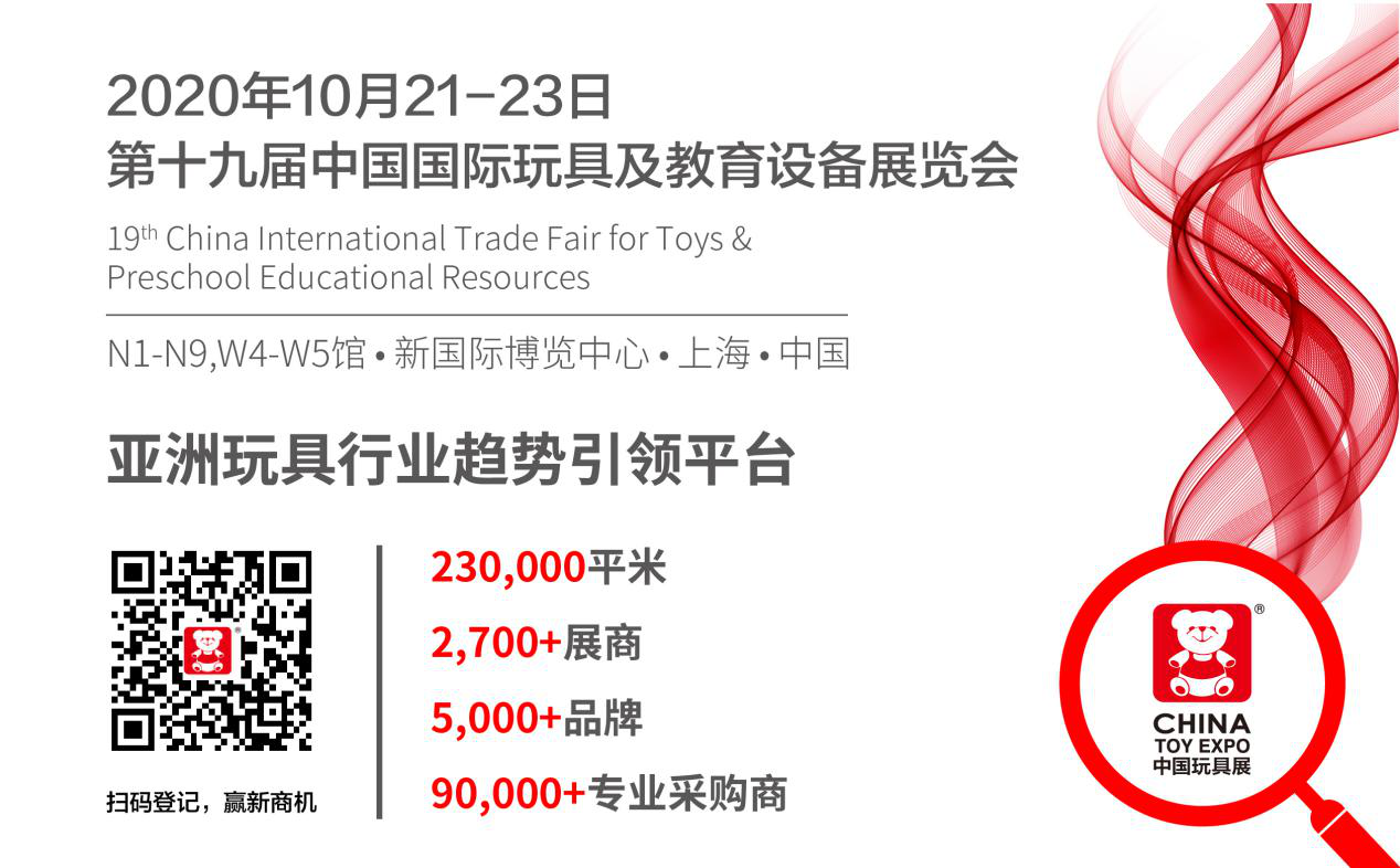 2020年CLE中國授權展、CKE中國嬰童展、CTE中國玩具展、CPE中國幼教展于10月21-23日在上海新國際博覽中心四展同臺,老時間、老地點、成效更好。目前,參展申請及參觀登記系統全面開放,百度搜索CTE中國玩具展,登陸官網(cn.china-toy-expo.com),點擊企業搶訂展位或買家登記采購即可參與。 |