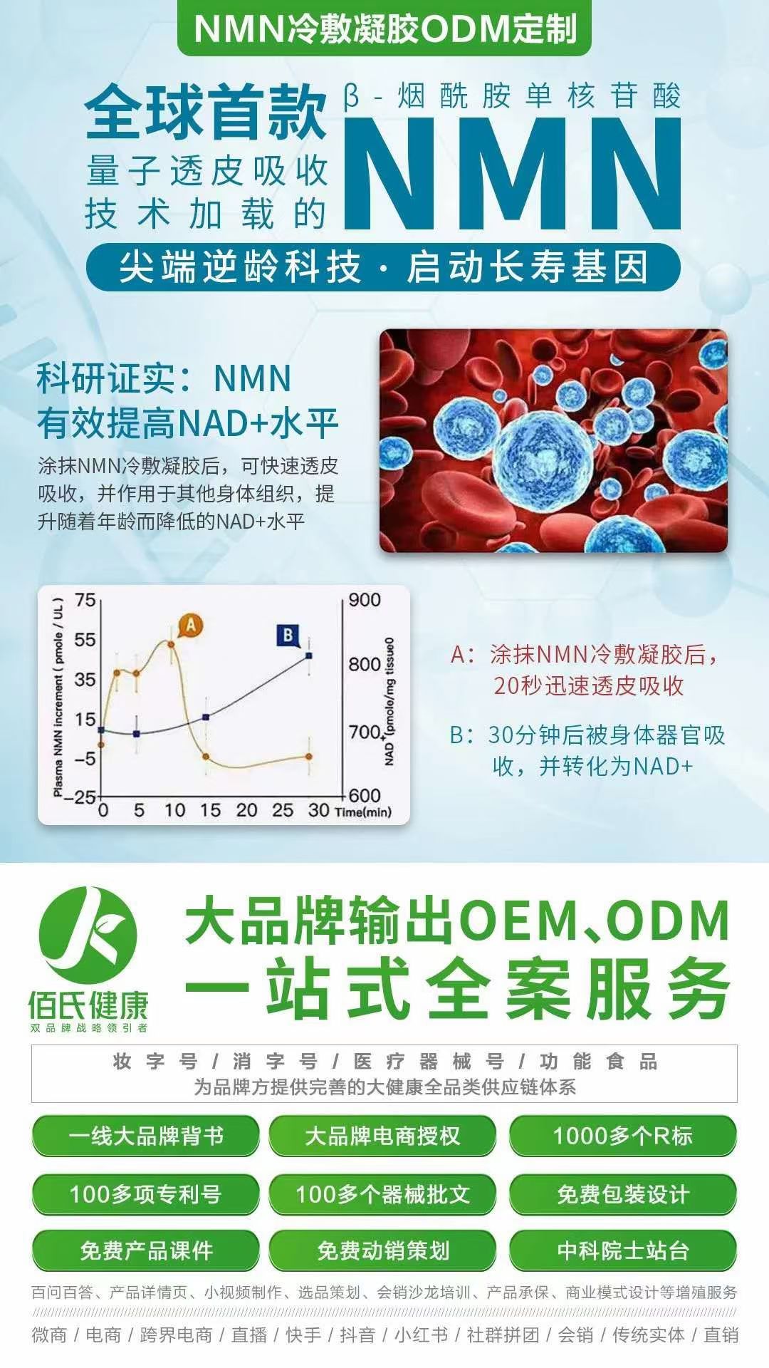 ️中科院獨(dú)家首發(fā)功效打包裝‼️ ️一抹立竿見影✅ ️中科院獨(dú)家條碼搶占市場誰先做誰先贏‼️ ️自家能生產(chǎn)不為他國做嫁衣‼️ 貼牌生產(chǎn)免費(fèi)寄樣 青春茵子(NMN凝膠) 風(fēng)靡全球, 它被譽(yù)為“凍齡圣藥 ;稱為“不老神藥”。主打抗衰老,延緩衰老,使人變年輕(年輕10-20歲),預(yù)防神經(jīng)疾病和抵御肥胖和糖尿病。 ![]() ![]() ![]() |