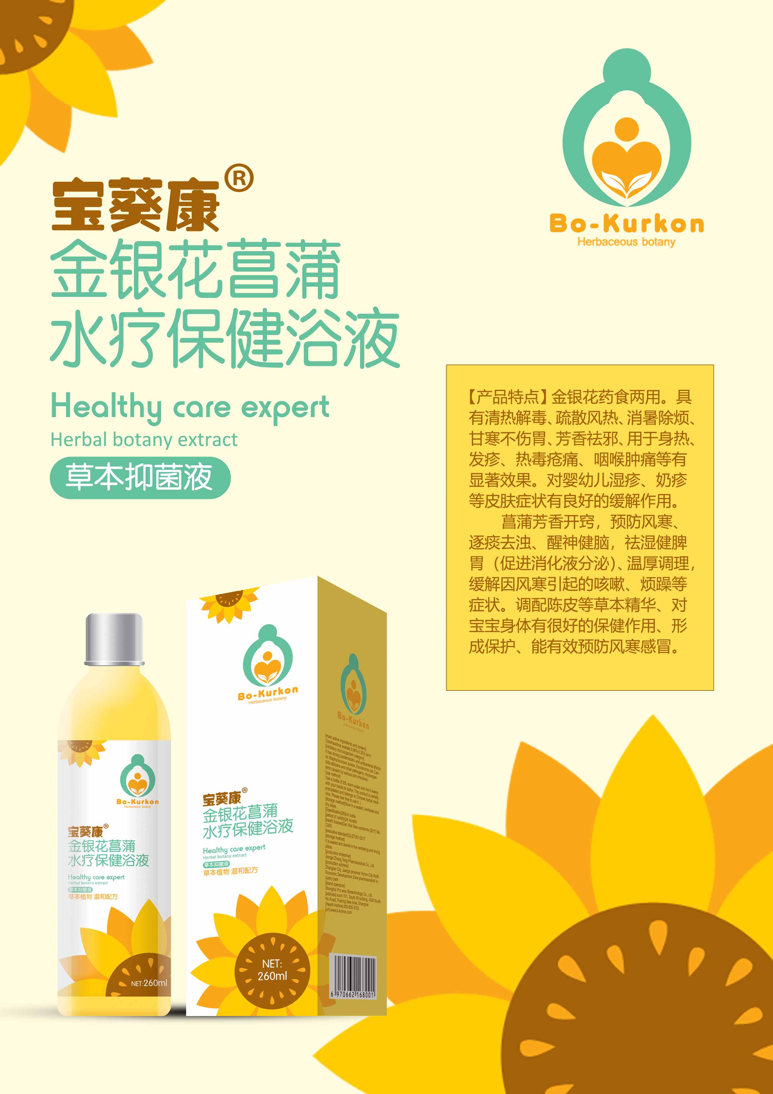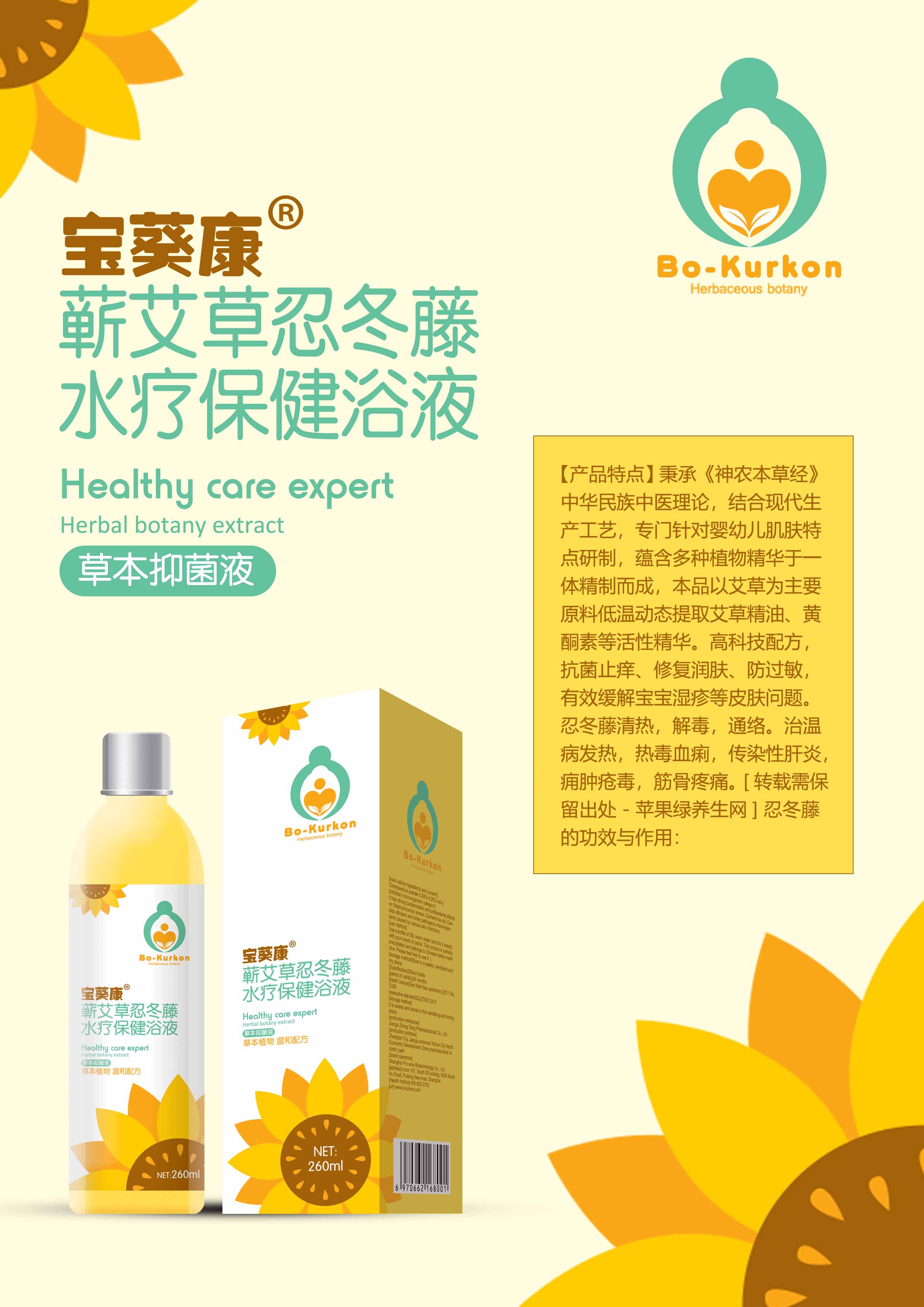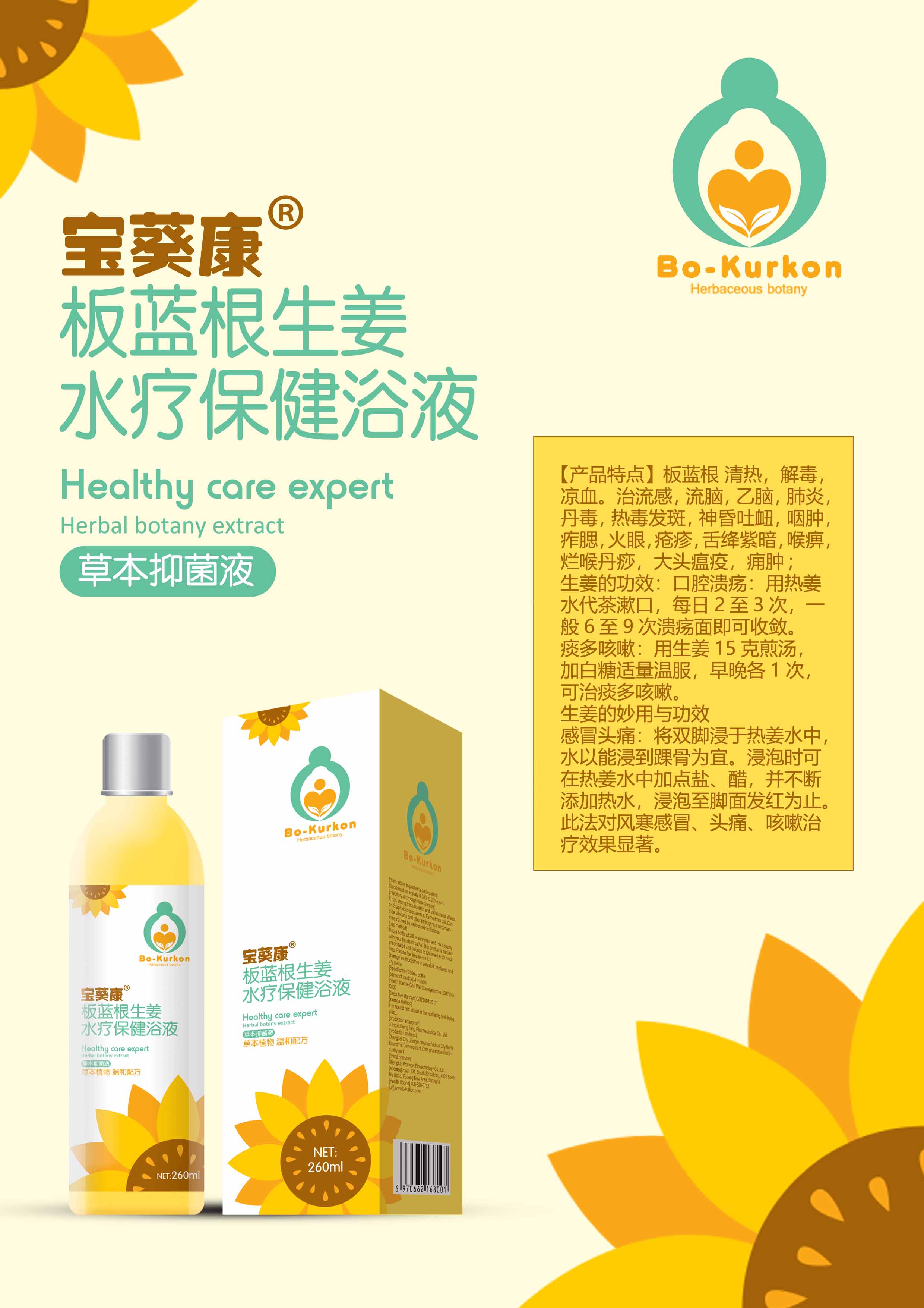 寶葵康水療保健浴液是上海親喔生物科技有限公司旗下洗護系列新品,配方科學,作用顯著,上市即熱賣,口碑炸裂,有板藍根生姜、黃芪野菊花、金銀花菖蒲、龍膽草紫蘇、蘄艾忍冬藤、新生兒茵陳六種單品。 寶葵康板藍根生姜水療保健浴液