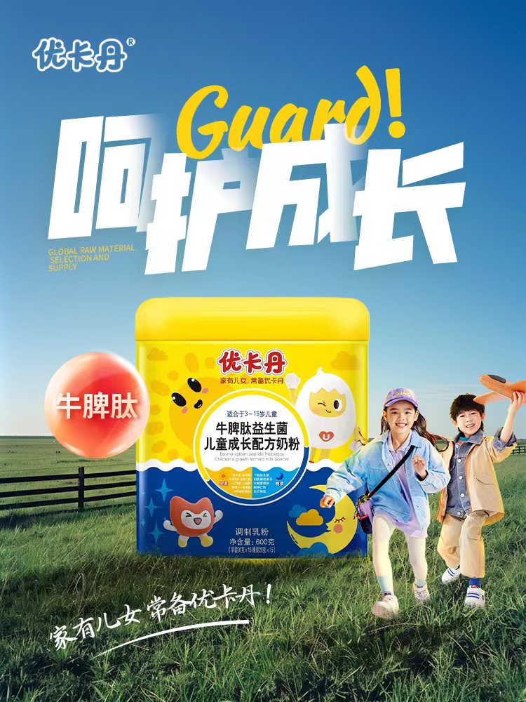 仁和集團 百億藥企 #優卡丹 專注兒童營養健康領域21年 #優卡丹 牛脾肽益生菌兒童成長奶粉上市招商啦 早裝添加:雞內金 茯苓粉 牛乳初粉 益智仁粉 山藥粉 山楂粉 酵母β-葡聚糖 初乳堿性蛋白 晚裝添加:十聯益生菌 水解蛋黃粉 酸棗仁粉 乳礦物鹽 白天養脾胃 晚裝助成長 家有兒女 常備優卡丹