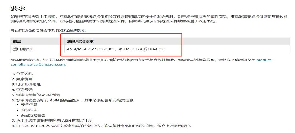 | 登山扣上亞馬遜的檢測認證標準 | |||